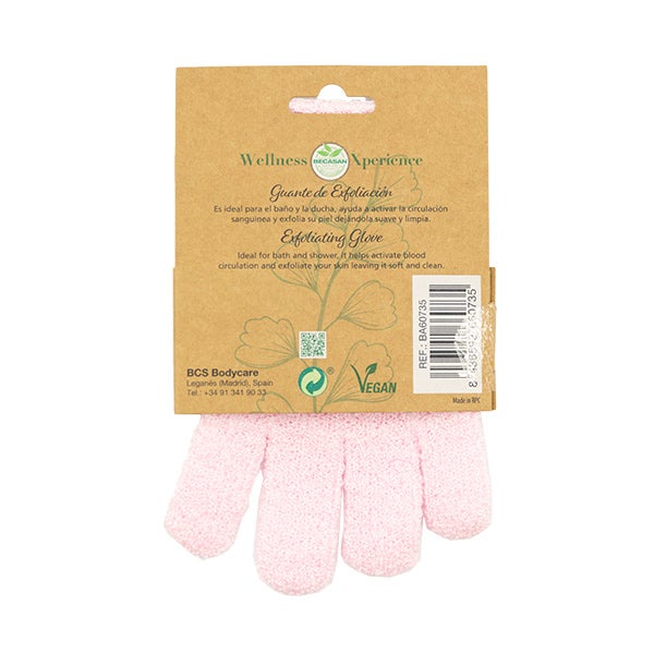 Perfeito para o banho ou o chuveiro. Esfregar o corpo com a luva esfoliante, com suaves movimentos circulares.