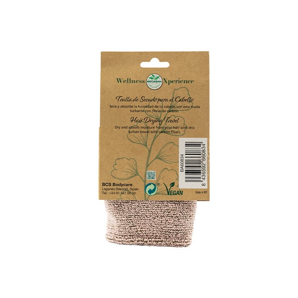 Utilizar depois da lavagem do cabelo. Forme um turbante na sua cabeça e amarre o botão para uma secagem rápida e cuidadosa.