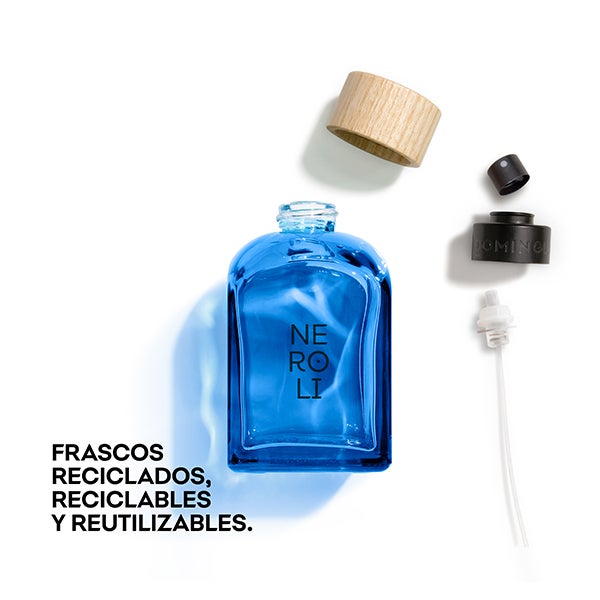 Feito com vidro reciclado, reciclável e reutilizável por toda a vida, graças ao novo sistema de rosca. Nossa tampa é 100% de madeira FSC e 0% plástico. Etiqueta de papel FSC proveniente de florestas bem geridas. Um design atemporal e único para toda a coleção feito na Espanha.