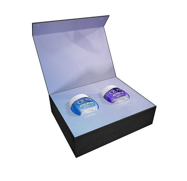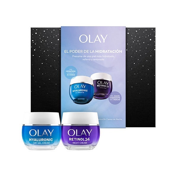 Com este pacote de OLAY desfrute do creme Hyaluronic + Vitamin B5 que melhora a barreira hidratante da pele em uma única aplicação e proporciona à sua pele uma aparência mais suave e saudável em apenas 14 dias. E o creme Retinol24 hidratante noturno que penetra profundamente nas camadas superficiais da pele. Você notará melhorias visíveis nas linhas de expressão e rugas, na suavidade e luminosidade da sua pele.