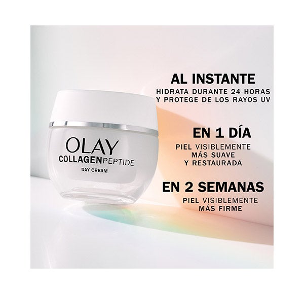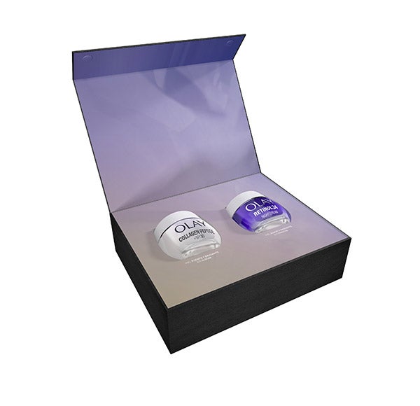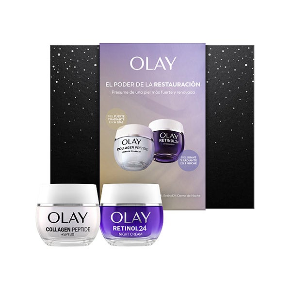 Com este pacote da OLAY, desfrute do creme Collagen Peptide24 para uma pele visivelmente mais forte e radiante em 14 dias. Contém peptídeos de colágeno que, ao contrário das moléculas de colágeno, podem penetrar até 10 camadas abaixo da superfície da pele. E o creme Retinol24 hidratante noturno que penetra profundamente nas camadas superficiais da pele. Você notará melhorias visíveis nas linhas de expressão e rugas, na suavidade e luminosidade da sua pele.