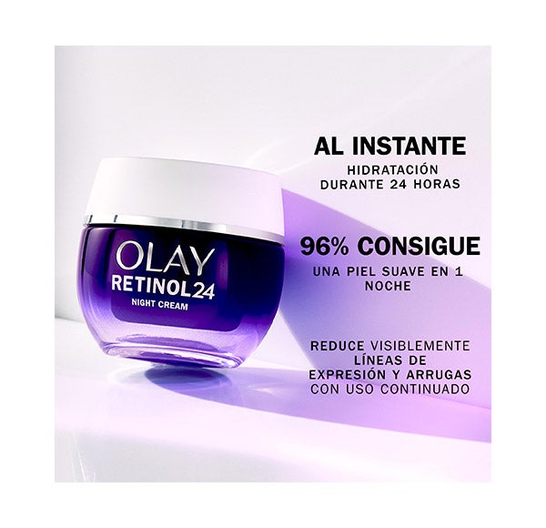 Com este pacote de OLAY desfrute do creme Retinol24 hidratante noturno que penetra profundamente nas camadas superficiais da pele. Você notará melhorias visíveis nas linhas de expressão e rugas, na suavidade e luminosidade da sua pele.
