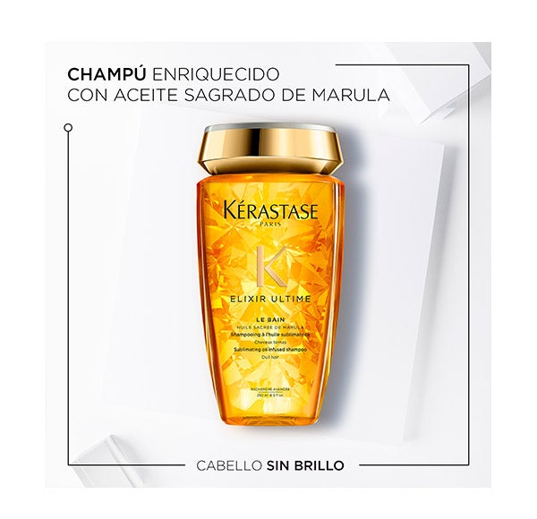 Este shampoo enriquecido com óleo de Marula realça o brilho graças à sua fórmula ideal para cabelos que necessitam de iluminação. Este leve e espumante shampoo revive a fibra capilar nutrindo-a com todas as vitaminas necessárias para conseguir um efeito sedoso. Purifica e elimina resíduos para acabar com as partículas que impedem um cabelo brilhante. Enriquecido com uma engenhosa combinação de óleo de Marula e de Camélia, esta fórmula está altamente concentrada em vitaminas C e D, e Ômega 9, um ácido natural graxo que consegue um efeito de alta duração. Além disso, esses nutrientes asseguram uma suavidade floral. A fibra capilar está preparada para ser cuidada, proporcionando brilho e nutrição até o final.