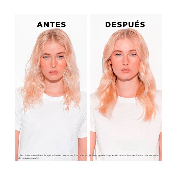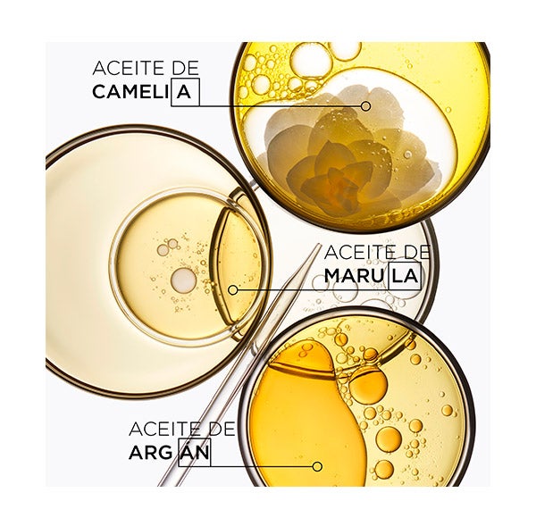 - Aceite de marula: Enriquecido con vitaminas C y D, proporciona una fuente intensa de nutrición, antioxidantes, para aportar a tu cabello los nutrientes que se merece.