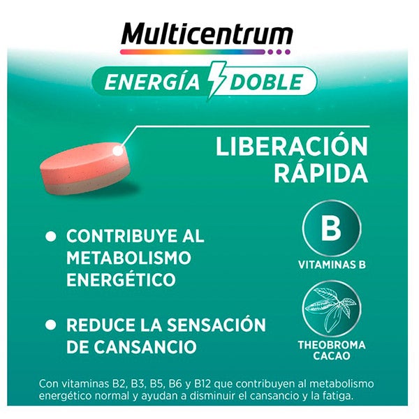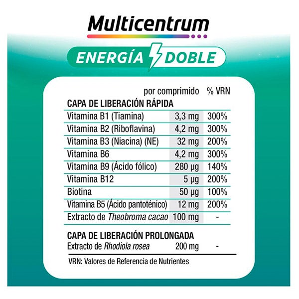 Multicentrum Energia Dupla é um suplemento alimentar projetado para fornecer um aporte extra de energia e vitalidade. Composto por uma fórmula rica em vitaminas do grupo B, ginseng e magnésio. Este produto é especificamente formulado para reduzir a fadiga e o cansaço físico mental. Sua combinação única de ingredientes ajuda a manter um desempenho ótimo ao longo do dia, tornando-o uma excelente escolha para aqueles que levam um estilo de vida ativo e precisam de um impulso adicional para enfrentar suas atividades diárias.