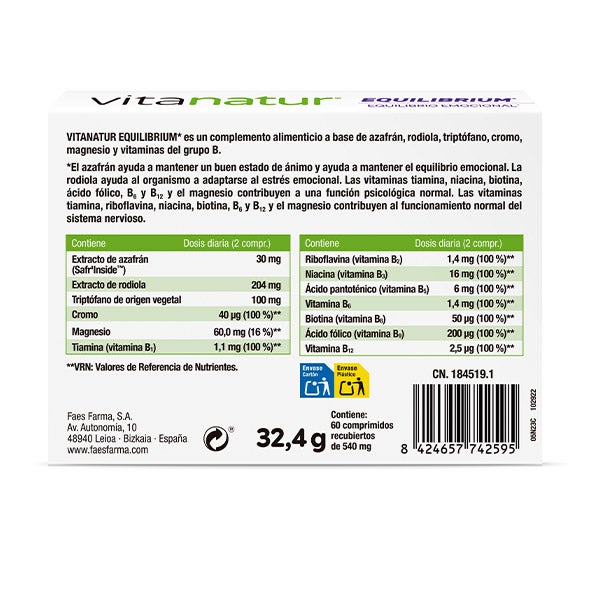 Suplemento alimentar formulado à base de ingredientes especialmente selecionados para ajudar a manter o equilíbrio emocional. As vitaminas B e o magnésio contribuem para o funcionamento normal do sistema nervoso e contribuem para uma função psicológica normal.