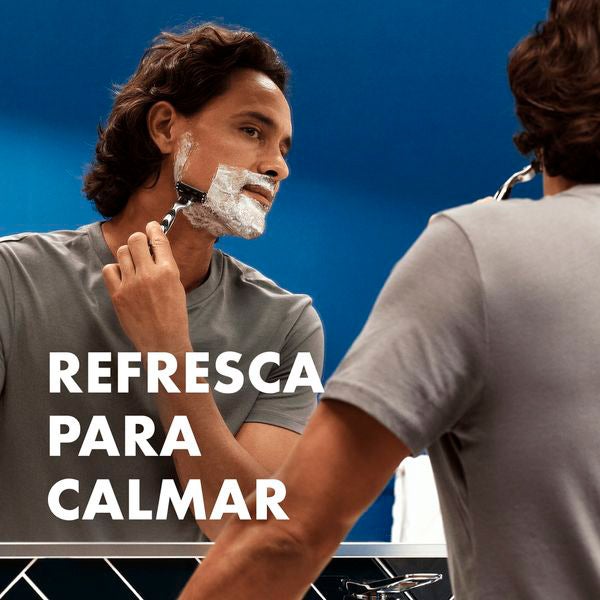 A espuma refresca para acalmar sua pele com uma ação refrescante enquanto você se barbeia, e está enriquecida com aloe vera. Sua fórmula única possui lubrificantes adicionais para um barbear suave. Mostre ao mundo seu melhor rosto com a espuma de barbear Gillette Series, criada para o homem pela marca de gel e espuma de barbear n.º 1 do mundo.