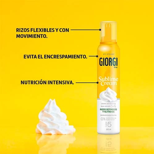 Prueba la Crema Definidora Sublime Cream Rizos Definidos de Giorgi para eliminar el encrespamiento y proporcionar unos rizos hidratados, definidos y elásticos.