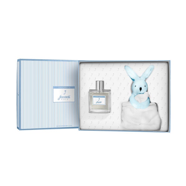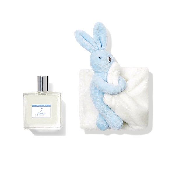 Esta icônica água perfumada de Jacadi tem um novo e adorável companheiro: um doce e suave coelhinho, uma pura delícia!