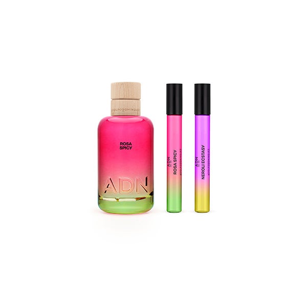 Rosa Spicy é parte da nova coleção ADN de Adolfo Domínguez. Uma coleção de Eau de Parfum à base de óleos essenciais que potencializam sua identidade. Rosa Spicy contém óleo essencial de Rosa, com propriedades que estimulam sua criatividade e inspiração. Um perfume desenhado para potencializar quem você é. Escolha ser você.