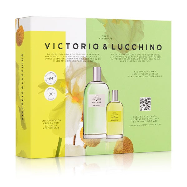 Este estojo de Victorio & Lucchino encontrou a melhor combinação de suas Águas Femininas. A Água Nº3 Íris Luminoso, pura e natural, e a fragrância intensa Nº15 Flor Oriental. Um pacote cheio de feminilidade e sensualidade.
