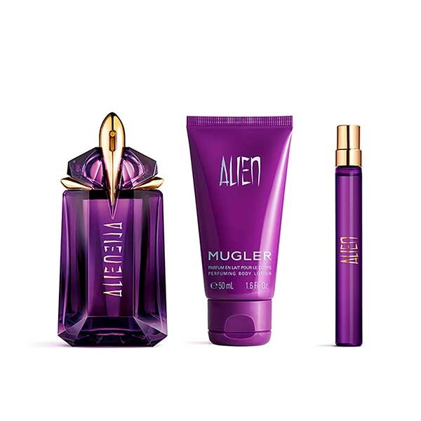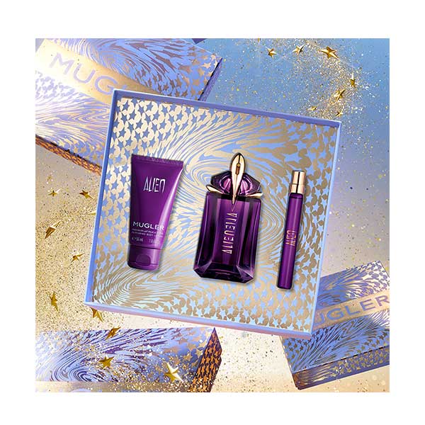Alien Eau de Parfum 60 ml y tamaño viaje 10 ml: una fragancia femenina que se creó con la intención de convertirse en la guía espiritual y olfativa del día a día. Es un perfume de mujer que dota de magnetismo y felicidad a quien lo lleva. Una extraordinaria fragancia gracias a su aroma hechizante y floral, la cual combina el poder del ámbar blanco con la magia del jazmín de Sambac y la madera de Cashmeran. Es brillante, magnética y hechizante.