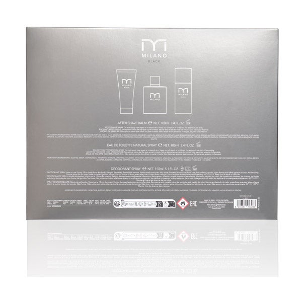 MILANO BLACK é uma fragrância oriental que começa com uma combinação de frescor da tangerina italiana e toques especiados de pimenta vermelha e canela, misturando-se com seu coração frutal e floral.