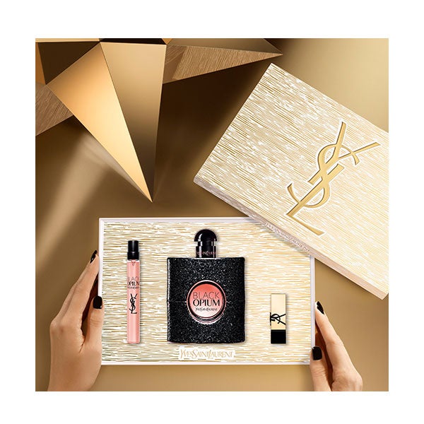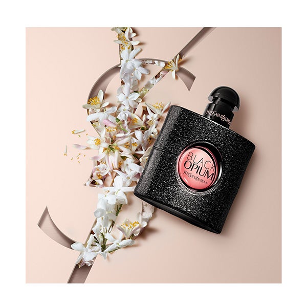 Black Opium Eau de Parfum 90 ml y tamaño viaje 10 ml: una fragancia femenina que se caracteriza por ser el primer perfume de mujer café floral. El café negro se combina por primera vez con la feminidad de las flores blancas y la sensualidad de la vainilla.