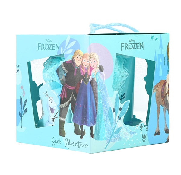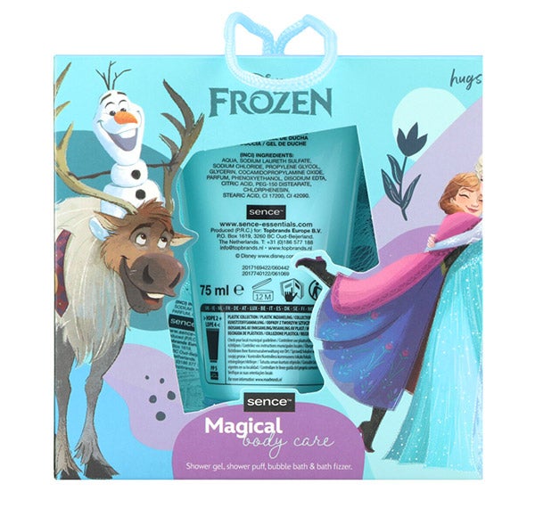 Um belo conjunto de presente de Frozen com quatro produtos para o cuidado do corpo com uma fórmula de ingredientes suavizantes deixará o corpo limpo e suave.