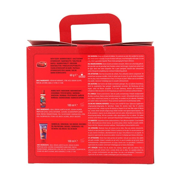 Com um gel de banho, uma bomba de banho e um gel de banho, este conjunto contém tudo o que você precisa para ter uma pele brilhante como a de Relâmpago McQueen.