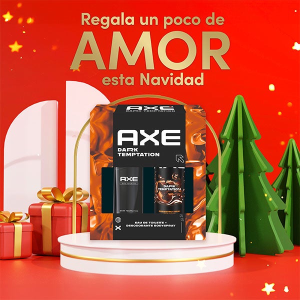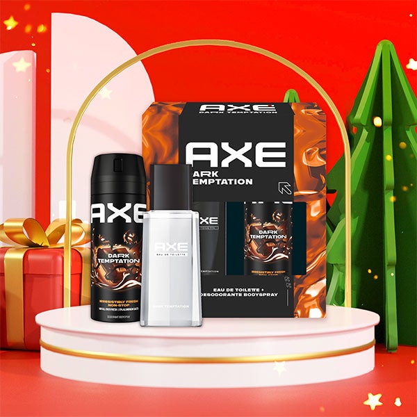 Axe Dark Temptation faz dos homens heróis. Sua combinação de notas frutais de tangerina e marmelo com aromas frescos e masculinos, como o sândalo, a sálvia e o âmbar líquido, dá-lhe a aura de um herói lendário. Sinta o efeito AXE com os produtos para a higiene e cuidado pessoal do homem deste nécessaire.