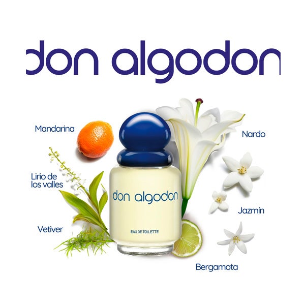 Eau de Toilette 100 ml: A fragrância emblemática de Don Algodón, com notas frescas e florais que envolvem você em um aroma encantador e duradouro.