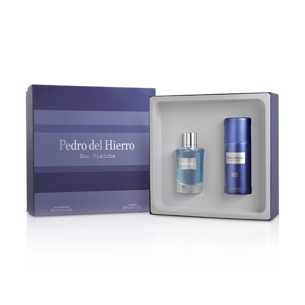 Estojo com o perfume masculino de Pedro del Hierro Eau Fraiche e desodorante com a mesma fragrância.