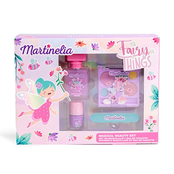 Descubra um mundo de encanto com o "Fairy Things: Magical Beauty Kit". Este conjunto inclui um eau de toilette, uma paleta de sombras de olhos com 6 cores e aplicador, um esmalte de unhas e uma lixa de unhas. Perfeito para meninas que desejam explorar sua criatividade e adicionar um toque de magia à sua rotina diária.