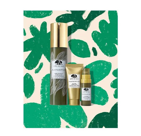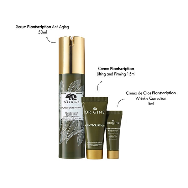Trio de essenciais Plantscription™ para uma aparência lisa e rejuvenescida, que inclui hidratante, contorno dos olhos e tamanho completo do nosso soro n.º 1.