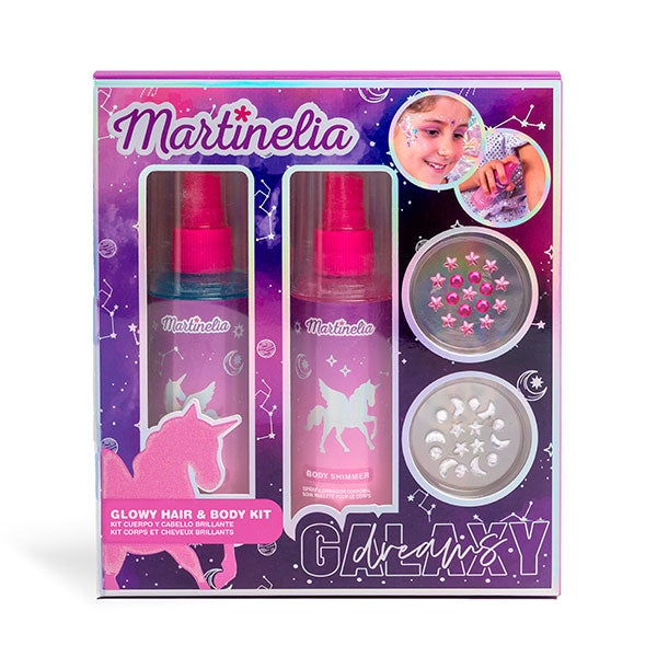 Leve seu visual para outro universo com o MARTINELIA GALAXY DREAMS GLOWY HAIR & BODY KIT! Este kit tudo em um permite criar um cabelo dos sonhos com tons vibrantes e brilhos cósmicos que capturam a magia do espaço. Projetado para quem quer brilhar com um estilo de outro mundo, este kit inclui cores intensas, fáceis de aplicar, que se combinam perfeitamente para um efeito galáctico único. Atreva-se a explorar novas galáxias com estilo!