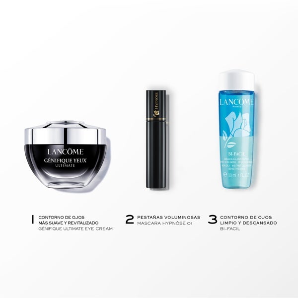 Acompanha uma rotina composta pelo Sérum Advanced Génifique, um tratamento facial avançado antienvelhecimento cuja fórmula contém prebióticos e probióticos; a Máscara de Cílios Hypnôse e um demaquilante Bi-Facil que limpa e purifica o rosto.
