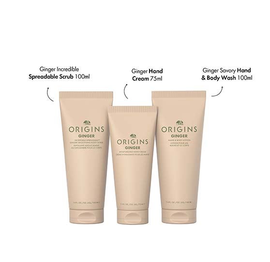 Presenteie-as com uma experiência sensorial de cuidado corporal. Comece com nosso esfoliante corporal e sabonete líquido Incredible Spreadable™ Smoothing Ginger Body Scrub e continue com nossa suave creme para mãos Ginger Hand Cream para suavizar a pele e estimular os sentidos com nossa característica fragrância quente e especiada.