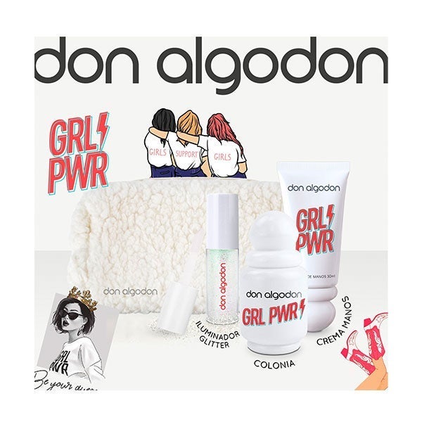 Empodere-se com o Conjunto de Presente Girl Power de Don Algodón. Inclui a fragrância Girl Power 30 ml, um iluminador glitter, creme de mãos perfumado e uma nécessaire de pelúcia. Um conjunto perfeito para mulheres seguras de si mesmas.