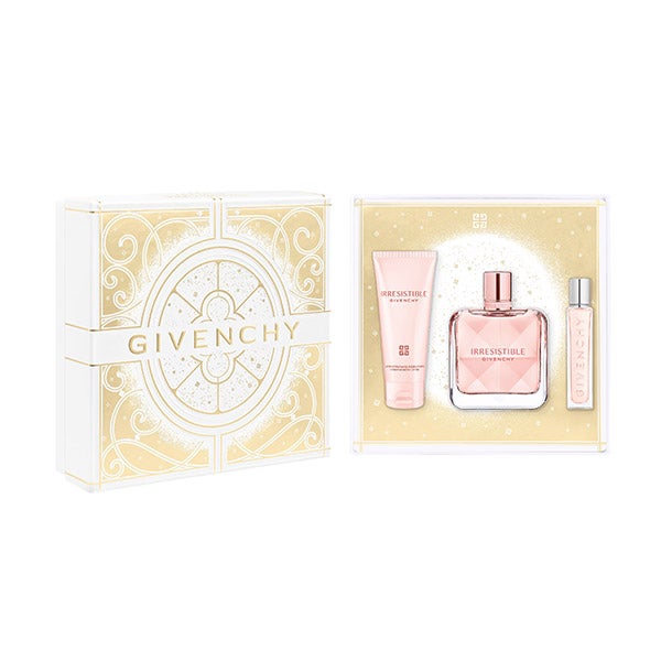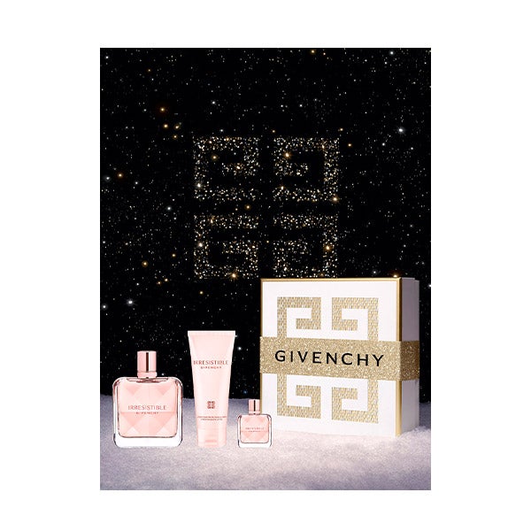 Una oda a la época de Hubert de Givenchy en la École Nationale Supérieure des Beaux-Arts de París, este exclusivo set de regalo Givenchy para el Día de la Madre ha sido diseñado por un joven artista formado por la prestigiosa institución. Este set de regalo que incluye un Eau de Parfum Givenchy Irresistible, una loción corporal y un spray de viaje.