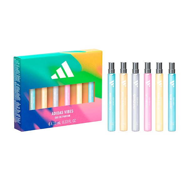 Conjunto adidas Vibes Discovery que inclui a gama completa de Eau De Parfum, para elevar seu estado de ânimo onde quer que vá. Sinta as vibrações com as novas fragrâncias da adidas. Está comprovado que os eau de parfum Vibes fazem você se sentir positivo*. Estas fragrâncias de longa duração têm uma fórmula vegana e são dermatologicamente testadas. Descubra a coleção completa de fragrâncias Vibes. 6 fragrâncias para o estado de ânimo, projetadas para todos.