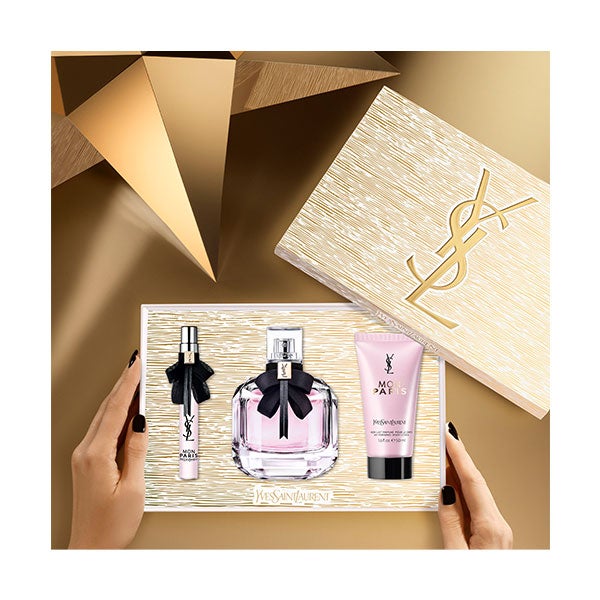 Mon Paris Eau de Parfum 90 ml y tamaño viaje 10 ml: una fragancia femenina que combina la excitante flor de datura con la feminidad de las flores blancas y la sensualidad del almizcle. Es un perfume ideal para las mujeres amantes de los aromas dulces y suaves como los de la fresa, la frambuesa, la pera y la naranja.