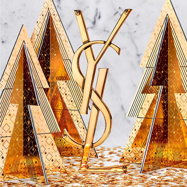 Esta Navidad envuélvete en flores doradas con los icónicos cofres de Yves Saint Laurent Beauty y descubre tus iconos favoritos en una aventura invernal.