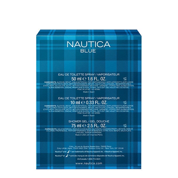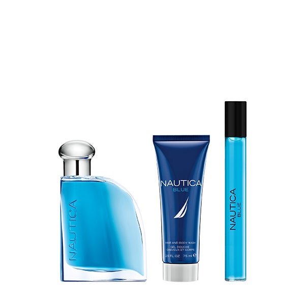 CONJUNTO DE PRESENTE DE EAU DE TOILETTE PARA HOMEM AZUL Sua paixão pela vida é contagiante: você não pode evitar querer ir onde está o Homem Azul de Nautica. Ele se sente em casa ao ar livre ou no oceano, revigorado pela frescura e pela energia dos espaços abertos. Você o encontrará traçando um rumo no grande azul, correndo pela praia ou fazendo trilhas, ou, se não, o encontrará sonhando com isso. Desfruta da vida, disposto a enfrentar novos desafios com a energia que o caracteriza.