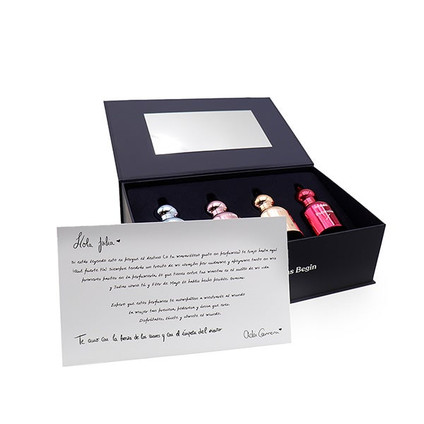 A tampa interior incorpora um espelho, transformando a experiência de abertura em um ritual íntimo e sofisticado. Além disso, inclui uma carta dedicada a todas as Julias, adicionando um detalhe emocional e pessoal que enriquece ainda mais a experiência.