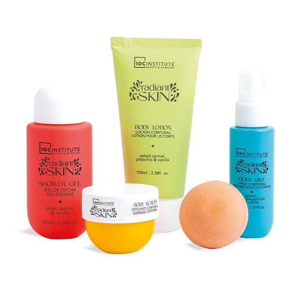 O Conjunto de Banho Radiant Skin é a solução perfeita para desfrutar de um momento de cuidado pessoal completo. Este conjunto inclui gel de banho, loção corporal, esfoliante, colônia corporal e uma bomba de banho. Cada produto é formulado para hidratar, esfoliar e relaxar, tudo acompanhado de uma fragrância deliciosa e duradoura.