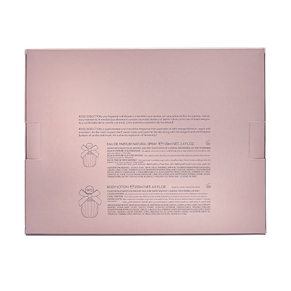 Rose Seduction é uma fragrância irresistível, que cativa com uma saída de flor de laranjeira, maçã e tangerina. À medida que se revela o coração, as notas doces e o jasmim vibram junto ao fundo elegante e confortável de baunilha e musk.