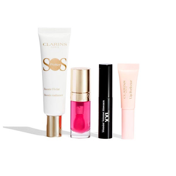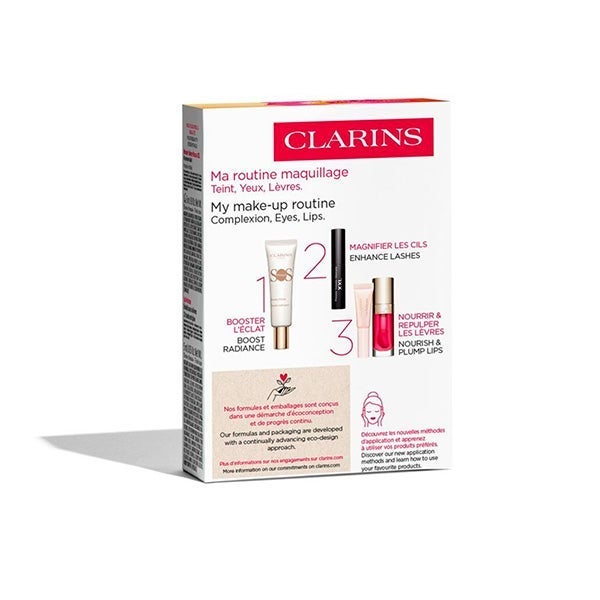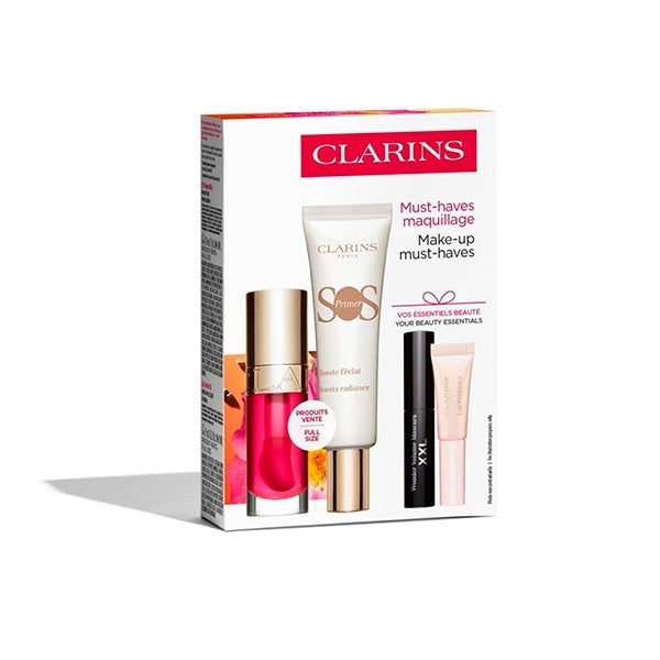 El Cofre Ritual de Belleza de Clarins es la combinación perfecta de tratamiento y maquillaje para realzar tu piel, potenciar la mirada y embellecer los labios sin pasar horas frente al espejo. Con la base iluminadora SOS Primer, la Máscara Wonder Volume y un dúo de labiales hidratantes, este set garantiza un look radiante y natural en pocos minutos.