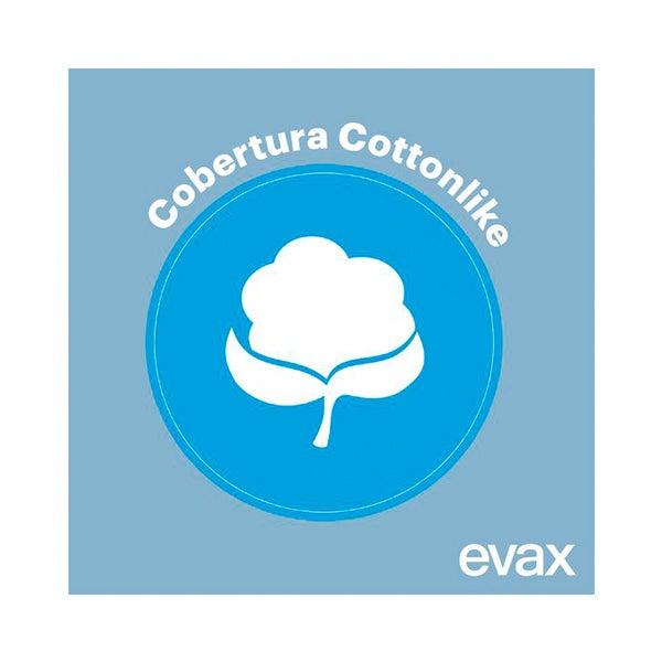 Os absorventes Evax Cottonlike absorvem o fluxo menstrual e ajudam você a se manter totalmente limpa e sem vestígios de odor. O Sistema Evax Cottonlike Dual incorpora pérolas ativas que neutralizam o odor e seu núcleo superabsorvente captura o fluxo menstrual instantaneamente. De longa duração, com abas para se manter no lugar e uma cobertura Cottonlike para maior suavidade, esses absorventes farão com que você se sinta confortável e permitirão que você continue seu dia sem interrupções. Disponíveis em diferentes níveis de absorção: Normal e Normal Plus para os dias de fluxo leve ou normal; Super e Super Plus para os dias de fluxo abundante ou muito abundante.