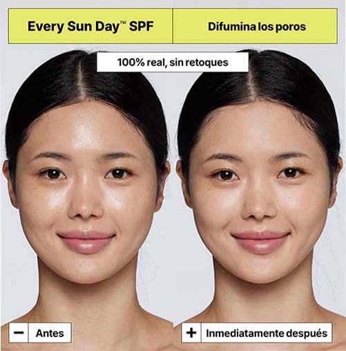 Proporciona hidratação durante todo o dia + Disfarça os poros instantaneamente + Reduz o aspecto de brilho oleoso*