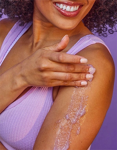 Elaborado com açúcar, manteiga de karité, cogumelos de neve, magnésio, ametista em pó e uma variedade de óleos naturais como óleos de prímula, abacate, macadâmia, amêndoas doces, cártamo e laranja para deixar a pele com uma boa sensação e um cheiro delicioso.