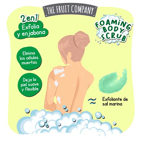 The Fruit Company Esfoliante Corporal Melão 2em1 pote: esfolia a pele, ensaboa e limpa a pele.
