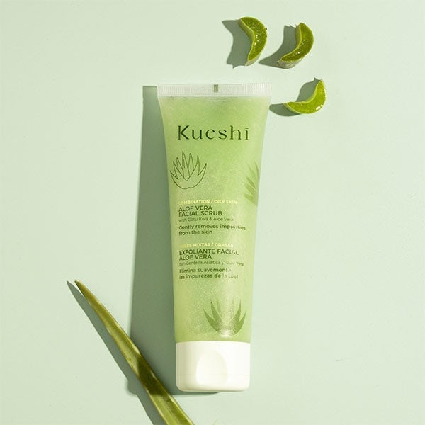 Esfoliante facial de aloe vera para peles mistas a oleosas de Kueshi.