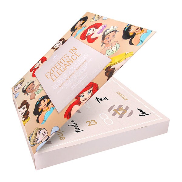 As eternamente inspiradoras princesas Disney Tiana, Ariel, Jasmine, Bella e Cinderela adornam nossa coleção Pure Princess, reimaginada com um estilo atemporal. Um capricho para cada dia de Advento.