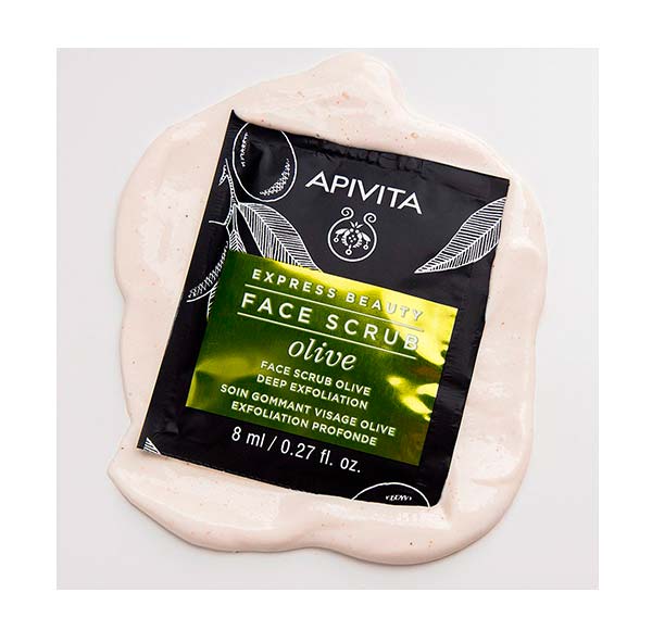 A máscara esfoliante facial com oliva, a planta mais emblemática do Mediterrâneo, esfolia e limpa a pele profundamente.