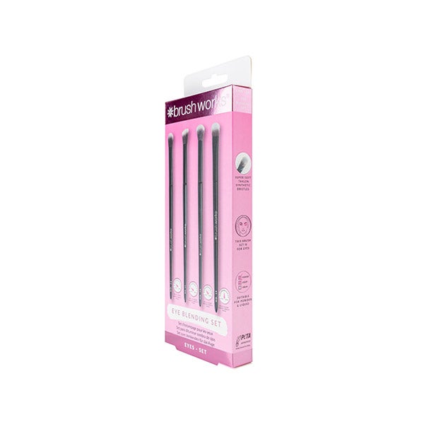 Transforme sua maquiagem dos olhos com o conjunto Brushworks Eye Blending, uma coleção projetada para revelar a artista que há em você. Este conjunto inclui o pincel de esfumar cônico nº 16, o pincel de esfumar angular nº 15, o pincel de esfumar fofo nº 14 e o pincel para o côncavo nº 19, cada um deles selecionado para cada etapa da sua rotina de sombras de olhos. Com cerdas sintéticas de taklon super macias, garantem que as sombras de olhos deslizem suavemente, ao mesmo tempo que são extremamente suaves com a delicada área dos olhos.