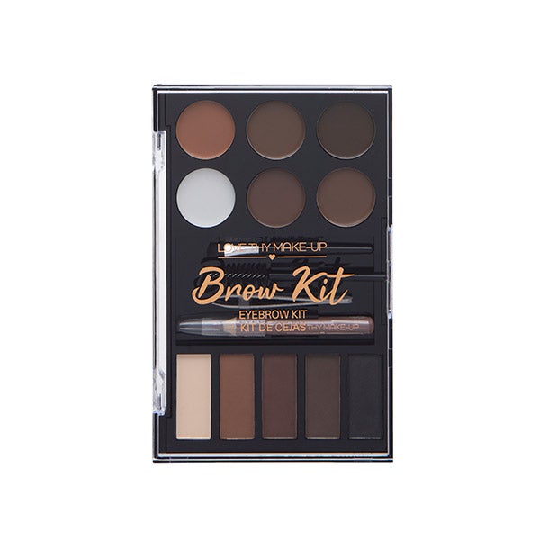 Kit de sobrancelhas que inclui pincéis e sombras em pó e em creme para definir suas sobrancelhas e deixá-las perfeitas.