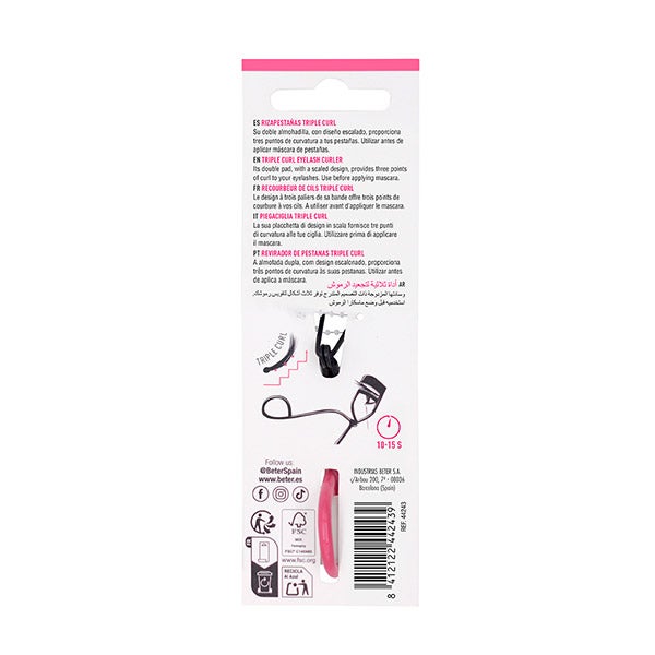 Sua dupla almofada de silicone, com design escalonado, proporciona três pontos de curvatura às pestañas.