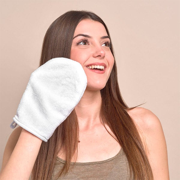 Fabricada com fibras suaves e de alta qualidade, esta luva fará parte do seu ritual de beleza enquanto remove a maquiagem e as impurezas de forma delicada.