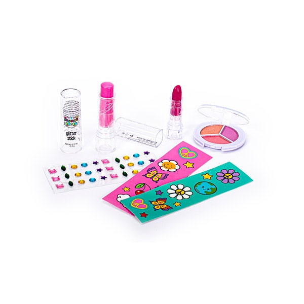 Pacote que inclui 2 batons, sombra de olhos, tatuagens e gemas faciais.